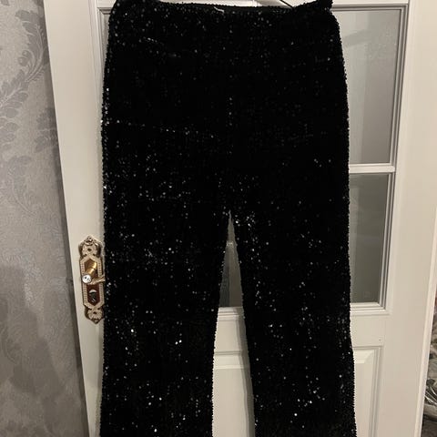 Bik Bok Andre bukser i størrelse XL for kvinner. Buksen er svart og laget av polyester/kunsstoff. Faller «tungt» og krøller ikke! Glidelås i siden. Vil si størrelsen egentlig er 40-42