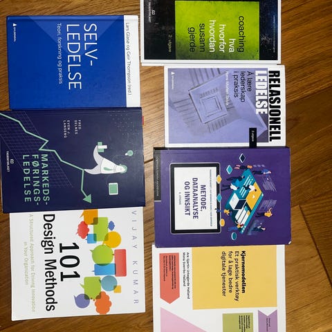 Selger mine pensumbøker brukt ved Grunnutdanning i ledelse på BI (studieåret 2024-2025). De fleste bøkene er nyeste utgaver og fremstår som nye uten markeringer.