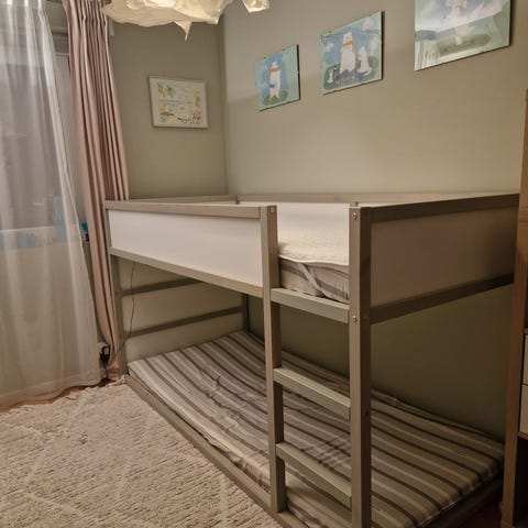 IKEA KURA vendbarseng m/madrass, overmadrass og sengegardin