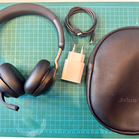 Jabra Evolve2 85 hodetelefoner med tilhørende bæreveske. Som nye. Hodetelefonene er over-ear-modell med polstrede øreputer og justerbar hodebøyle. Leveres med kabel for tilkobling.
