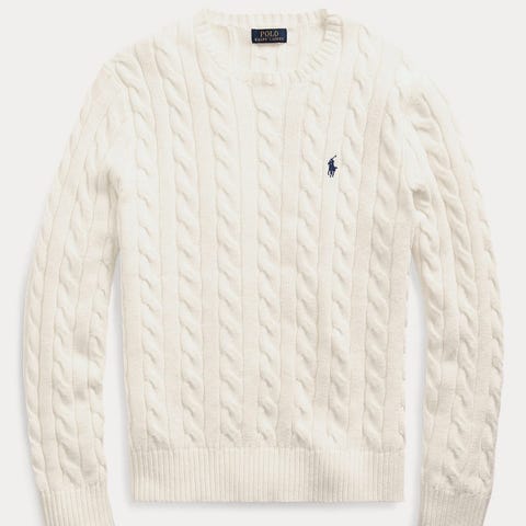 Ralph Lauren genser i hvit farge, størrelse M, laget av bomull. Genseren har en enkel design med rund hals og langermet passform, egnet for menn.