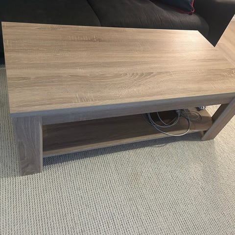 Sofabord i tre gis bort. Anslår lengde rundt 110cm, bredde rundt 60cm, høyde rundt 40cm (noe avvik kan forekomme). Kan hentes ved Jonsrudveien (Frogner/Skøyen).
