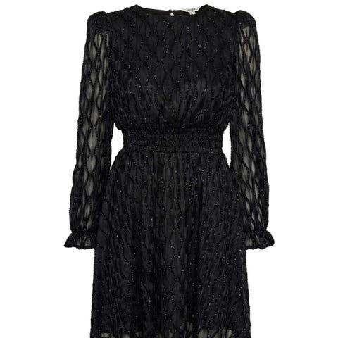 Love Lolita Festkjole i størrelse L, farge svart. Kjolen har et mønstret stoff med blomstermotiv og lange ermer med ballongstil. Høy hals med dekorative detaljer rundt kragen. Kjolen har en innsvingt midje og et lagdelt skjørt. Faller svært pent.