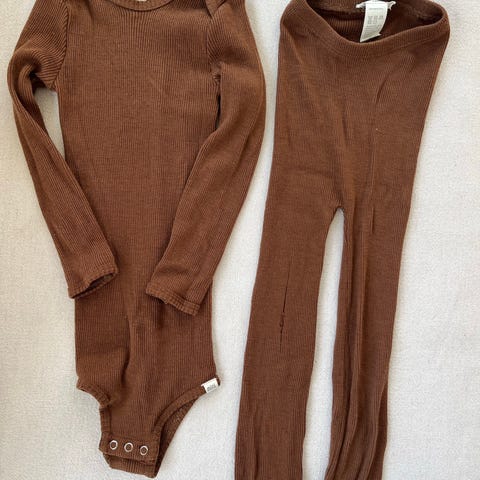 Ullgenser og bukse. Hull på det ene kneet. Str 92-98