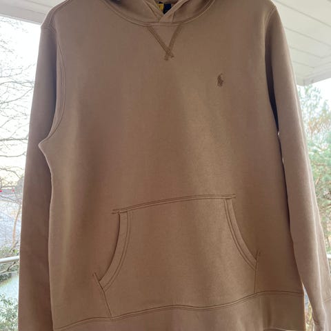 Ralph Lauren hettegenser i størrelse M for menn. Genseren er beige og laget av bomull. Den har hette og frontlomme.