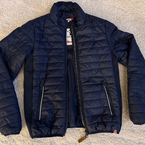 Selger en vinterjakke med pels på hetta i str. 134. Merket er Legowear. God og varm jakke. Selges for 200 kr.