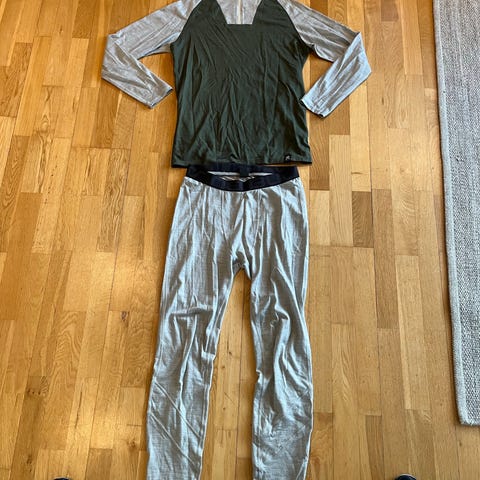 50/50 Merinoull og viskose i underdel. 50/50 merinoull og polyester i overdel.