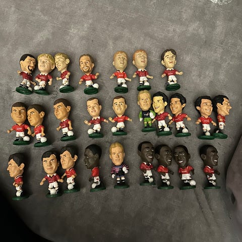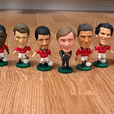 11 stk forskjellige Corinthians collecter fotballfigurer fra Manchester United 1995. Følger med samlekort.