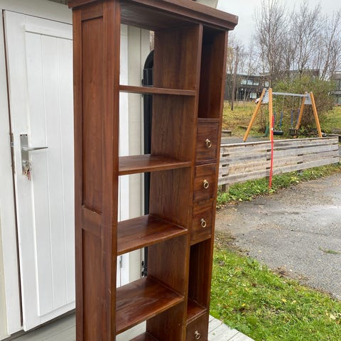 Det står på barnesikring på noen av dørene nå men disse fjernes enkelt. Bokhyllen er i svært god stand og har ingen skader. Trenger seg en god vask for å få fjernet støv eneste. 😊