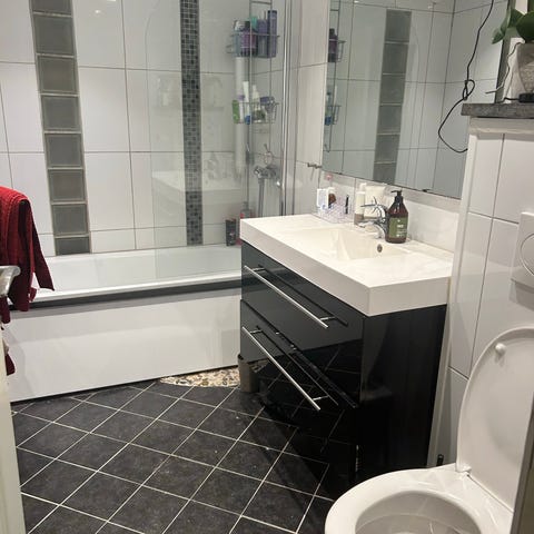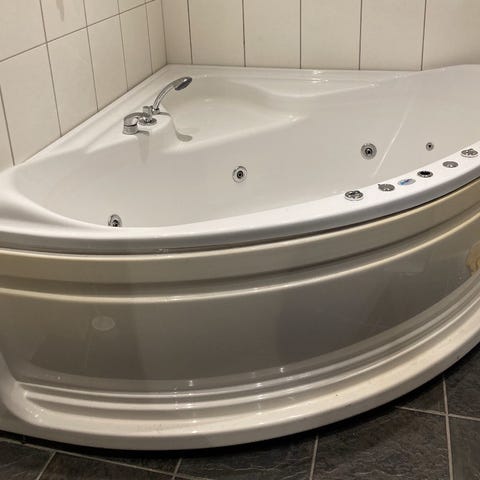 Dobbelt boblebad og dusjkabinett gis bort mot henting og demontering.