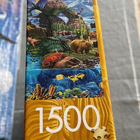 Puslet 1 gang. Selve puslespillbrikkene er som nye, men noen få av eskene har fått litt skavanker under åpning.