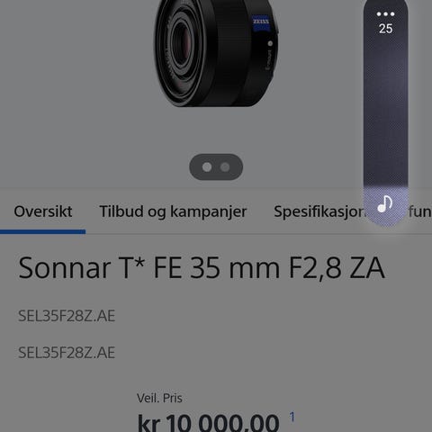 Sony Zeiss FE 35mm F2.8 AF E-mount objektiv med fullformat sensorstøtte. Objektivet har en brennvidde på 35 mm og en maksimal blenderåpning på F2.8. Passer for Sony E-mount kameraer og er godt egnet både til vidvinkelbilder og detaljerte nærbilder, og leverer høy og jevn bildekvalitet helt ut i kantene.
