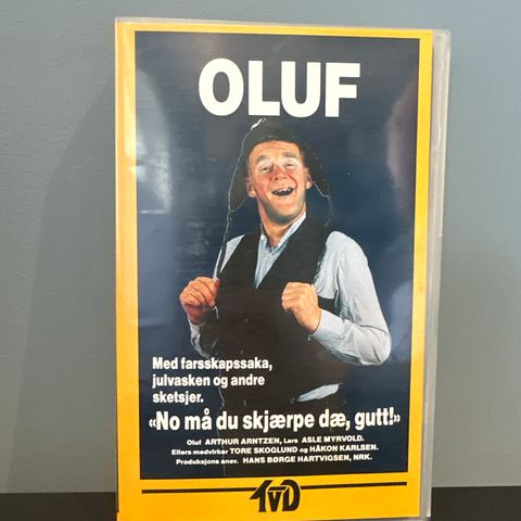 Tre ulike VHS med Oluf, spilt av Arthur Arntzen.