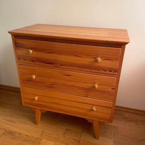 Kommode til IVAR-systemet. Kommode med 3 skuffer, i heltre og sponplater. Perfekt til klær, duker og annet.