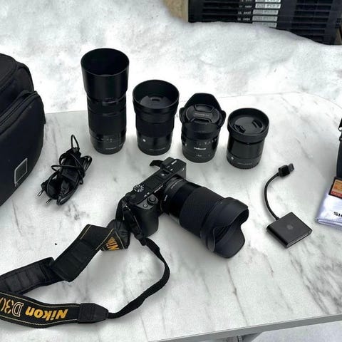 Sony Alpha 6300 speilløst kamera med svart farge. Kameraet blekblåt på finn i sommer og selges nå grunnet en oppgradering til Sony A7 IV. Det føller med et batteri objektiv et silikon hus for beskyttelse, samt selve kamerahuset. Objektivet er et Sony FE 28-70 mm F 3,5-5,6