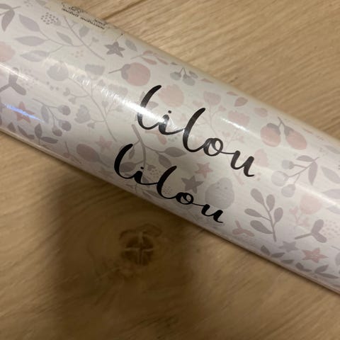 Ukjent veggteppe i rullform. Fargen er beige, og materialet er ikke spesifisert. Produktet er uåpnet og i rullet tilstand.