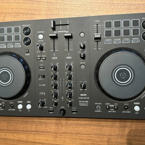 Pioneer DJ DDJ-FLX4 DJ-kontroller med to jog wheels, flere kontrollknapper og mikserelementer. Farge: svart. Passer for DJ-bruk. Nypris ca 4200,-