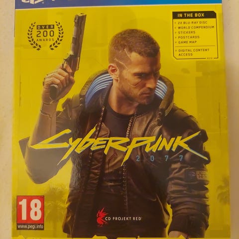 Cyberpunk 2077 til Playstation 4. Inkluderer spilldisk og installasjonsdisk. Spillet er brukt; ingen riper eller slitasje på disken. Ingen fett eller smuss.