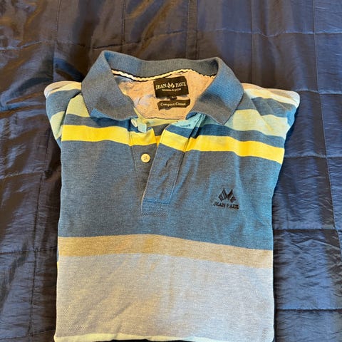 Jean Paul Polo skjorte i størrelse L for menn. Laget av bomull med svart farge. Klassisk design med krage og knappestolpe.