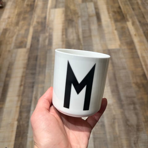 4 ubrukte Arne Jacobsen Design Letters , espresso kopper Tall i typografi,espresso kopper i benporselen ,ø 5,5 cm , høyde 6 cm ,kan brukes som espresso kopper og også som advent «stake «