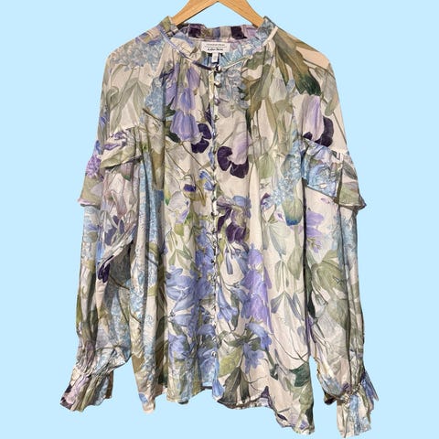 & Other Stories bluse i flerfarget silke, størrelse 40. Blusen har knappelukking og er laget av 57% bomull og 43% silke.