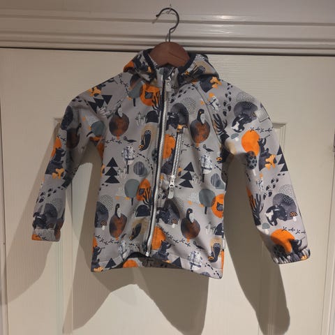 Jakke med lett fôr som har kult mønster (se bilde). Typisk overtrekksjakke, høstjakke, vårjakke.