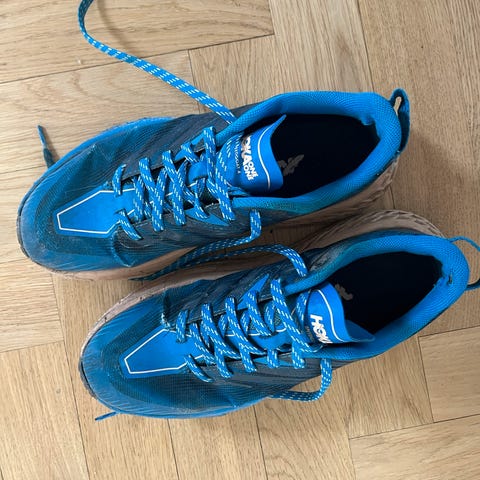 Hoka Sneakers joggesko i størrelse 42. Skoene har en lys farge og er laget for komfort og støtte ved løping og daglig bruk.