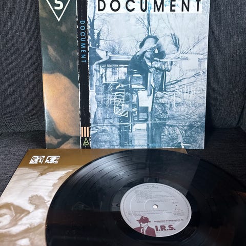 Har for salg et meget bra eks av Document, Europa-utgave fra 87. Lite spilt, vinyl ser veldig fin ut. Finner ingen riper. Får ikke testsnurret den. Cover er meget pent. Skarpe kanter minus en ørliten dink høyre kant, fine hjørner. Hentes på Torvastad eller sendes for kr 69. Kombinerer gjerne. Svarer ikke på pruting.