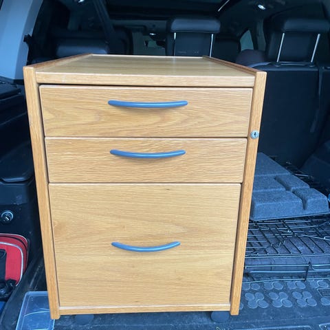 Skuffeseksjon, kan stå under skrivebord eller frittstående. Følger med 4 hjul som ikke er montert.