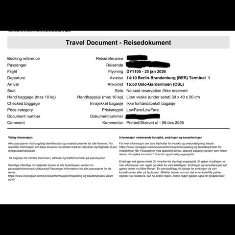 Avreise: Oslo Lørdag 03.01.2026 14:00 Ankomst: Kiel Søndag 04.01.2026 10:00 Billettype: Økonomi