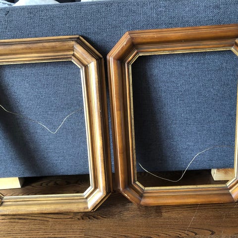 Svarte rammer i lakkert stål. Bildene er i svart/hvitt.