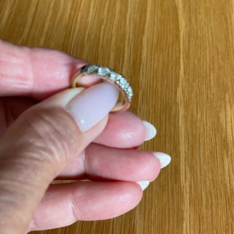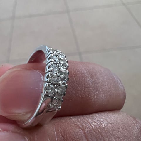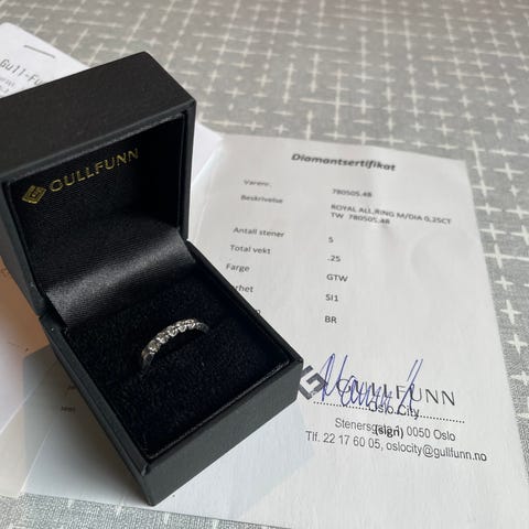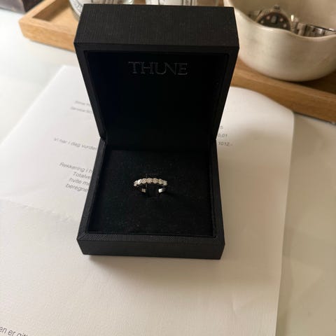 Rekkering fra Thune i hvitt gull med 9 diamanter 0,31 ct. Str. 52. Diamantsertifikat og eske medfølger.