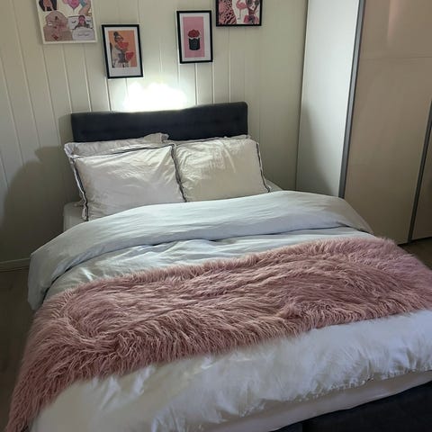 Overmadrass 120 cm i typen TISTEDAL, også fra IKEA, kan fås med på kjøpet hvis ønskelig. Det er noen bruksmerker/flekker på overmadrassen. Mulig dette kan fjernes med rens.