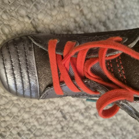 Pent brukt av 2 barn i kortere periode, men slitt i tuppene foran etter krabbing.