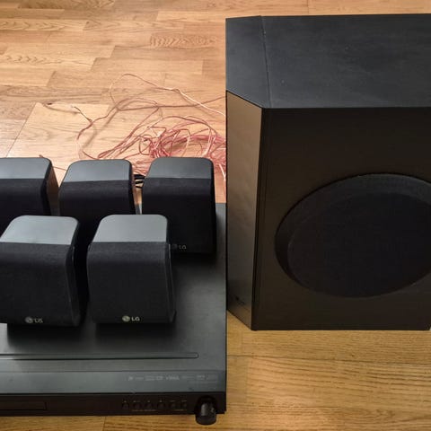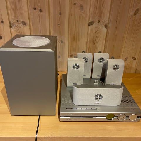 Med dvd spiller og 5 høytalere pluss sub.