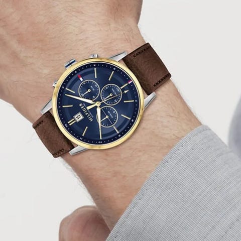 Tommy Hilfiger Herreklokke med brun skinnrem