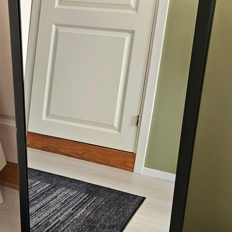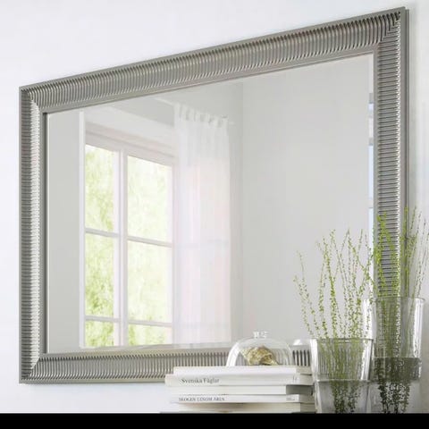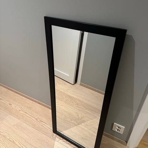 IKEA speil med hvit ramme, veggmontert. Kan henges både vertikalt og horisontalt. Er også fint stående på gulvet.