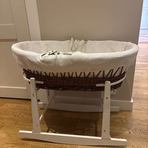 Naturlig moseskurv med premium madrass og håndtak. Kurven er vevet for hånd, som gjør den til et helt unikt produkt. Den vil gi et rolig og trygt sted å hvile for din lille baby.