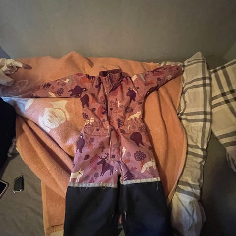Vikafjell varmedress størrelse 122 cm. ( Ganske stor i størrelsen) Dressen ikke så mye brukt. Det er satt på en lapp på ene kneet pga et hull. Profesjonelt utført. Farge gråblå.