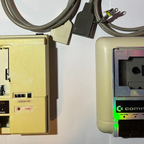 Commodore 1541 Diskettstasjon for Commodore 64/128 datamaskiner. En ekstern diskettstasjon designet for å lese og skrive 5,25-tommers diskettmedia. Enheten har en grå plastkonstruksjon med tilkoblingsporter på baksiden for strøm og data.