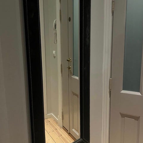 IKEA speil med hvit ramme. Speilet er rektangulært og designet for veggmontering eller stående bruk.