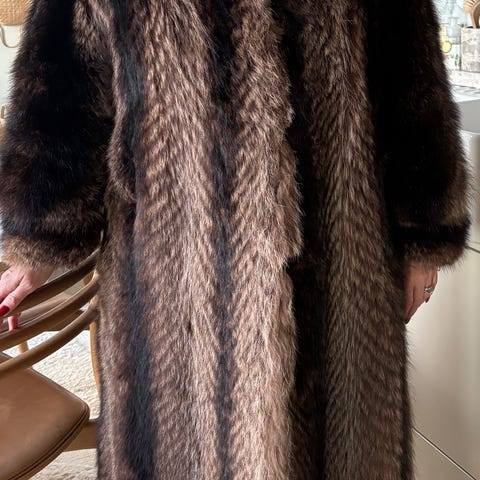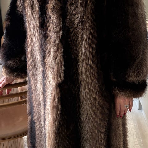 Flott vaskebjørn pelskåpe. Kjøpt hos Aksel Ronten, spesialforretning i pels som en gang i tiden lå på Grünerløkka. Kåpen fikk min mor i 60 års gave i 1988. Den gang var den verdt 24 000 kr. Den er minimalt brukt og oppbevart på kaldt lager. Kåpen er spesiell flott, sydd i hele stykker og fine farger. Det står ingen størrelse i den, men kan brukes fra str. 36-40. Gode hemper til å lukke kåpen. Lengde fra skulder er 95 cm.