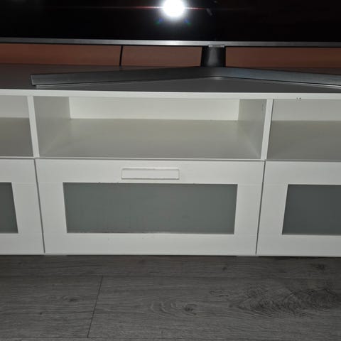 Pent brukt tv benk fra IKEA av modellen Brimnes. modellen er svart med to romslige skuffer. Noen mindre bruksmerker. Hentes på Carl Berner. Står i kjelleren i underetasjen. Jeg kan hjelp med å bære opp. Det er mulig å stå med bil rett utenfor døra.