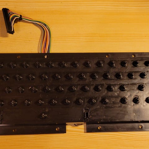 Commodore 64 tastatur i brødboks som er koblet til en KeyRah v2 kontroller som igjen kan kobles til en PC og fungere som vanlig PC tastatur via USB2 kabel.