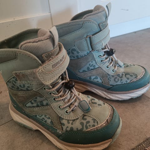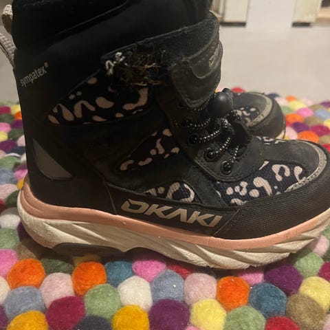 Fine rosa okaki vinterstøvler. Disse er gode og varme og såle og sko er inntakt. Noe slitasje på utseende fordi de er lyse i fargen men mye god støvel igjen her.