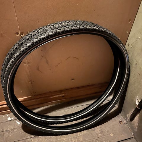 Har kun sittet på sykkelen, men aldri blitt syklet på, så fremstår som nye! Selges grunnet overgang til annen sykkel som ikke har samme hjuldimensjoner.