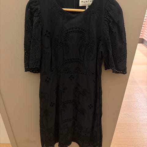 Munthe hverdagskjole i størrelse 36 for kvinner. Kjolen er hvit og laget av polyester. Den har lang arm og er designet for hverdagsbruk, med lommer. Nydelig å ha på.