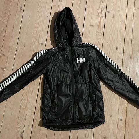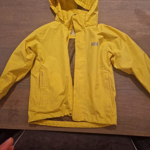 Helly Hansen barnejakke i størrelse 152, egnet for både gutter og jenter. Jakken er laget av polyester og har en oransje farge. Den har hette og glidelåslommer, og er designet for å gi beskyttelse mot vær og vind.