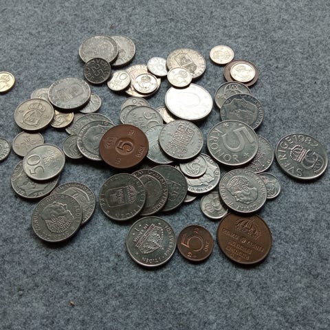 Diverse svenske mynter.