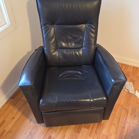 Lenestol i fint brukt stand med normal slitasje gis bort mot henting. Under stolen er det en utstikkende del i midten (konstruksjonsdetalj/feste) som tidligere har laget hull i et teppe den stod på. Selve stolen er ikke skadet, men det anbefales å bruke beskyttelse under dersom den plasseres på tepper eller ømfintlige gulv.